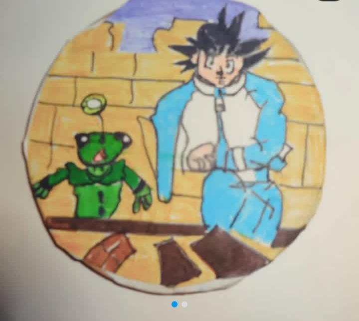 Gokul is relaxing. He has battles before. And with him georgy is also feeling good outside. They are at rock stage. This is rare. This is rare that Goku is doing such stuff. This is a good one. It gives good vibes as well. It is here. The hush and stillness. But all grins from both of them.